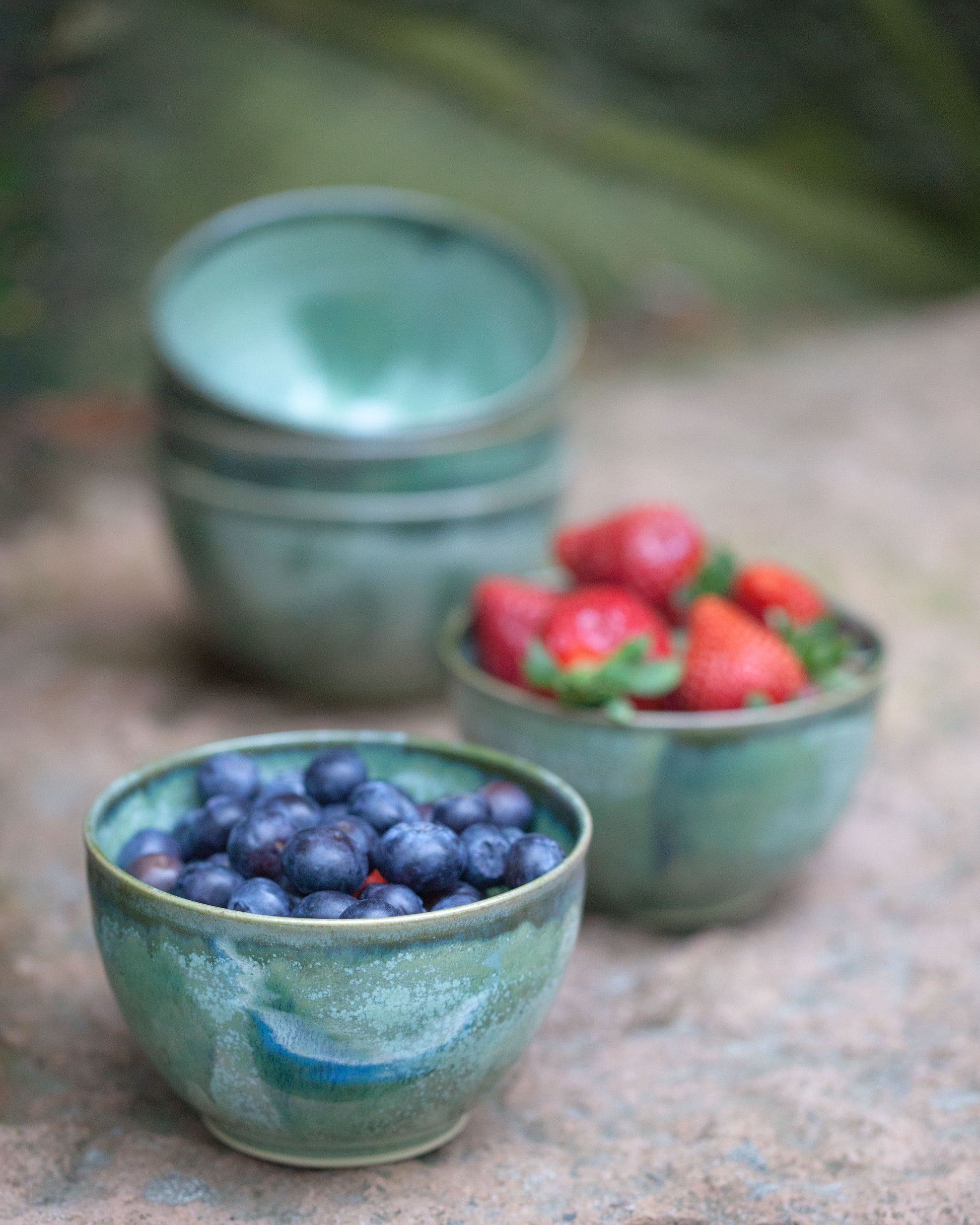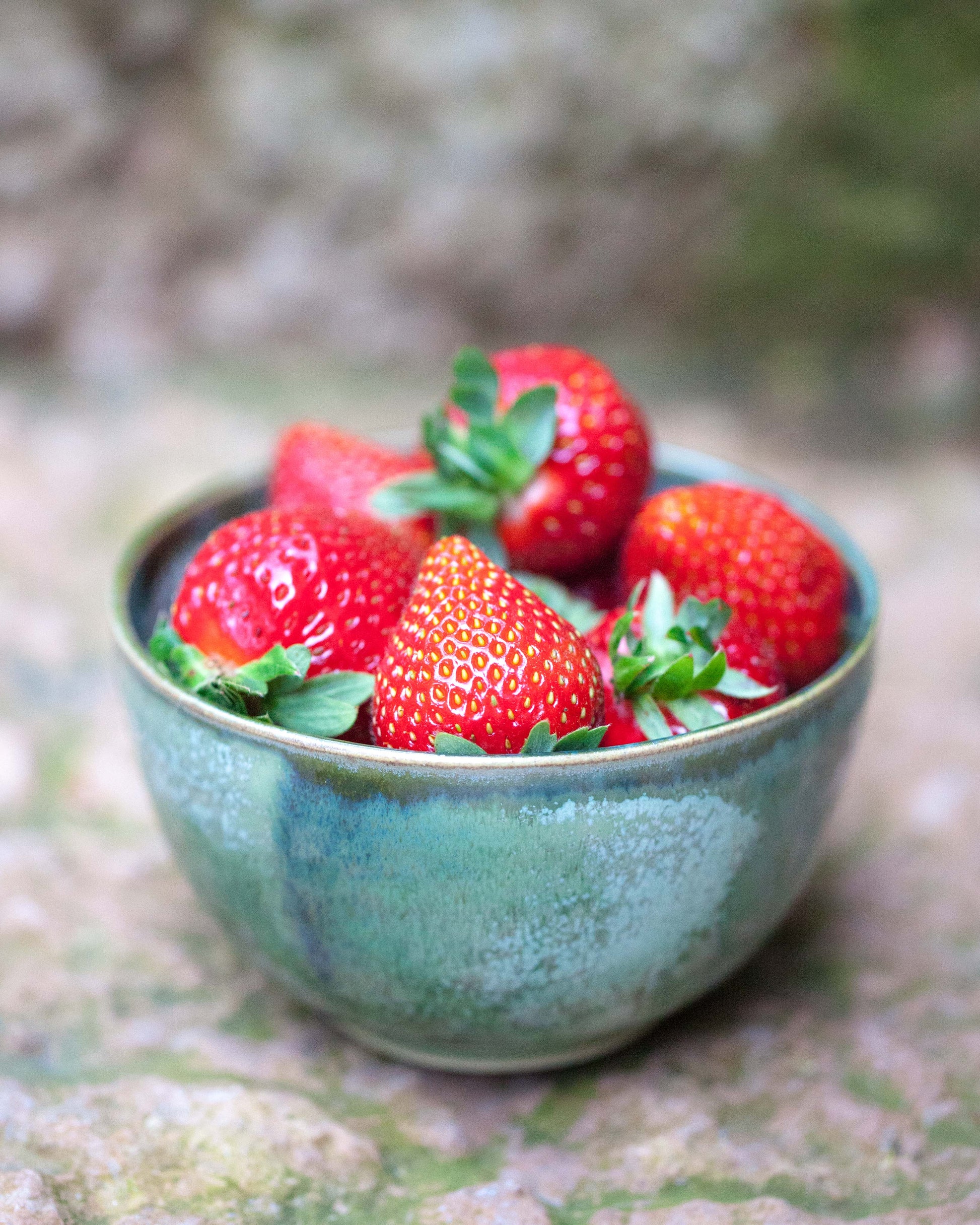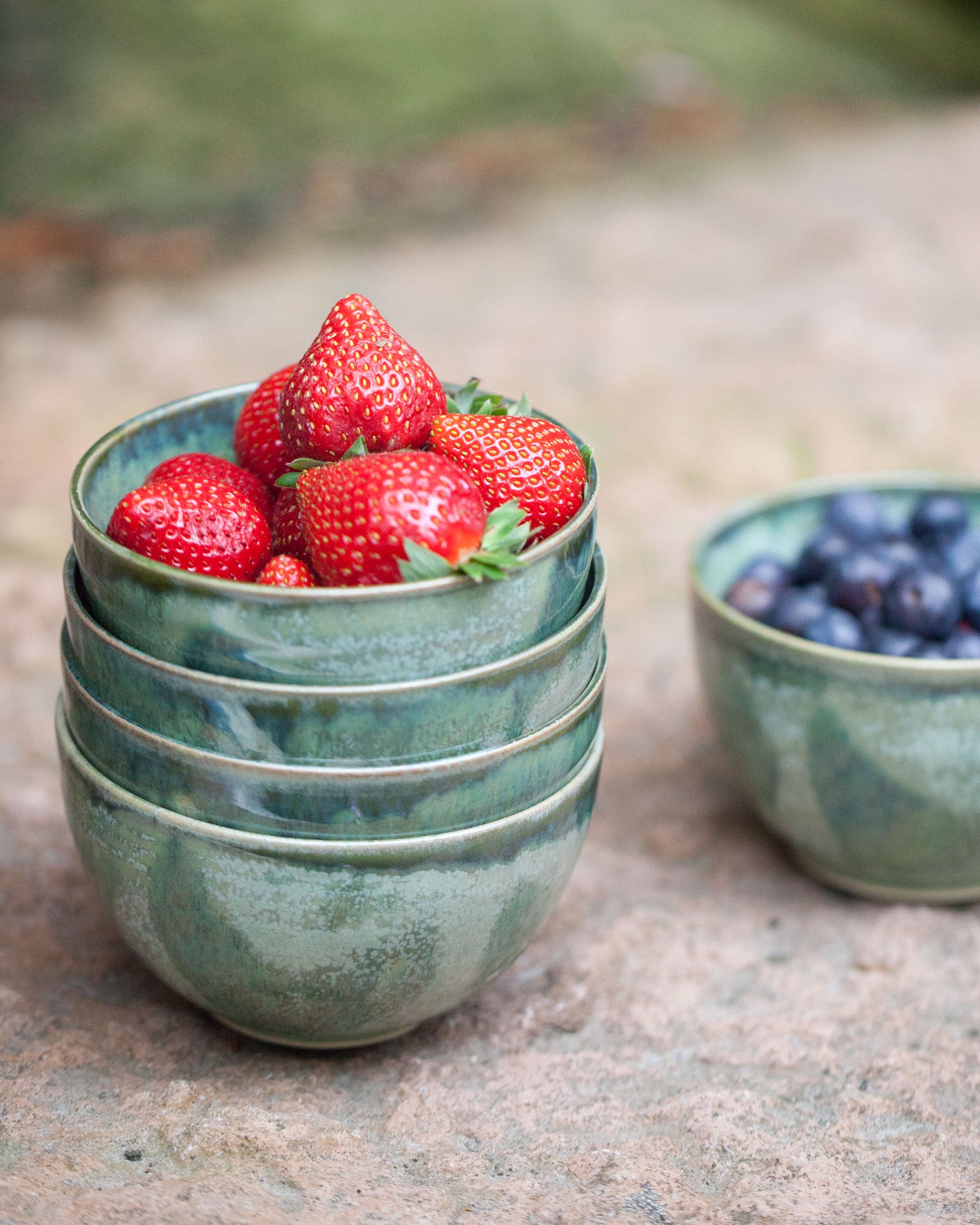 Liten drejad skål i ljus stengodslera. Glasyrmix av två olika gröna glasyrer. Går fint att köra i diskmaskin och mikro. Diameter 10-11 cm. Höjd ca 7 cm. Rymmer ca 3 dl vätska.