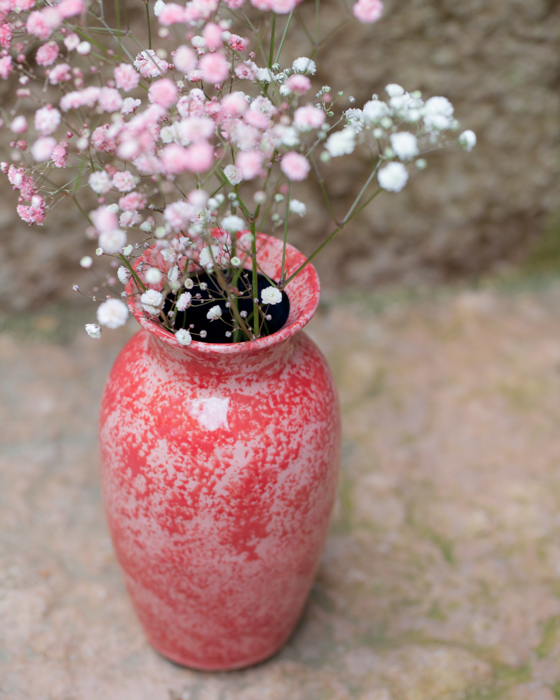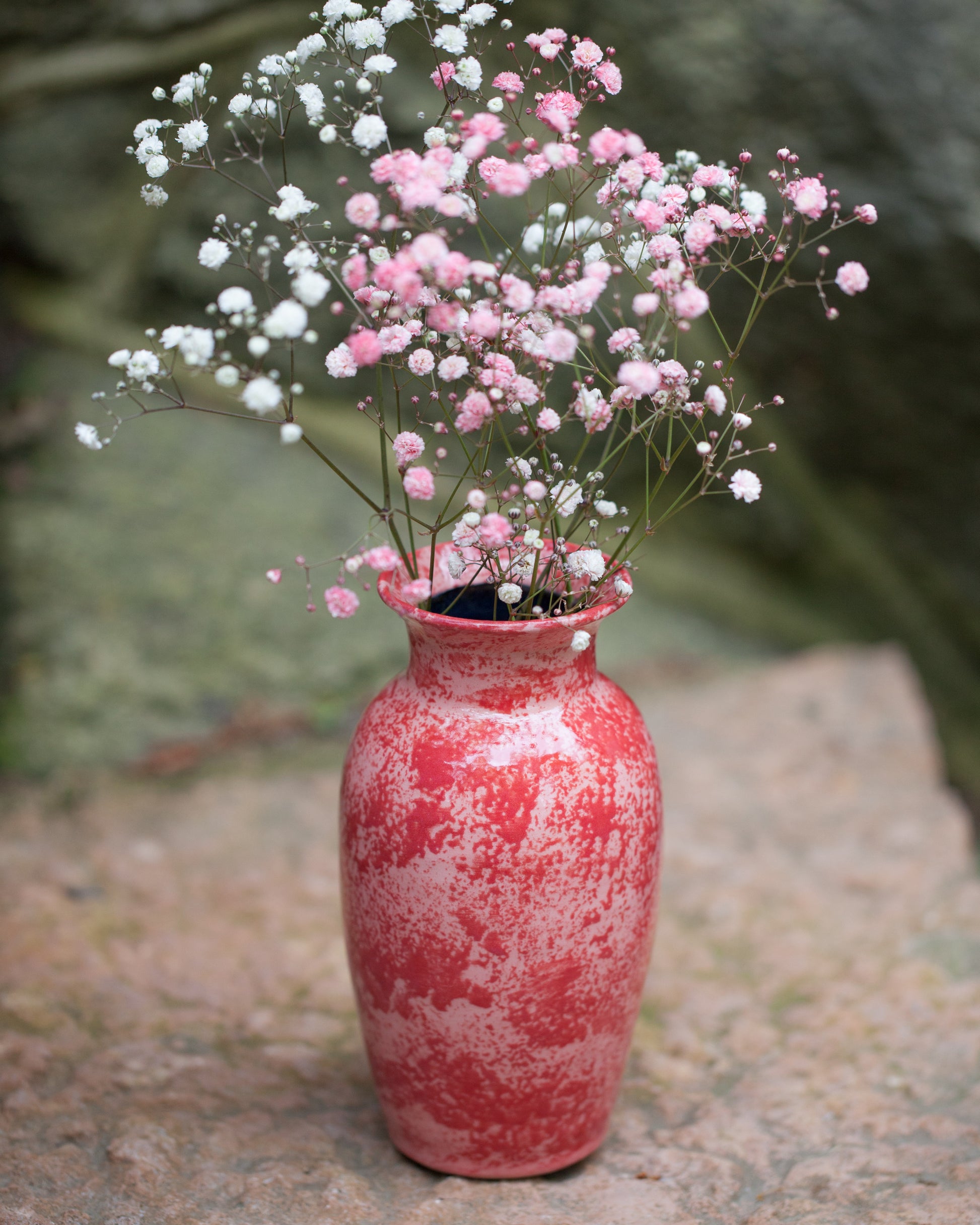 Drejad rödrosa vas. Insidan glaserad i blank svart. Höjd: 19 cm