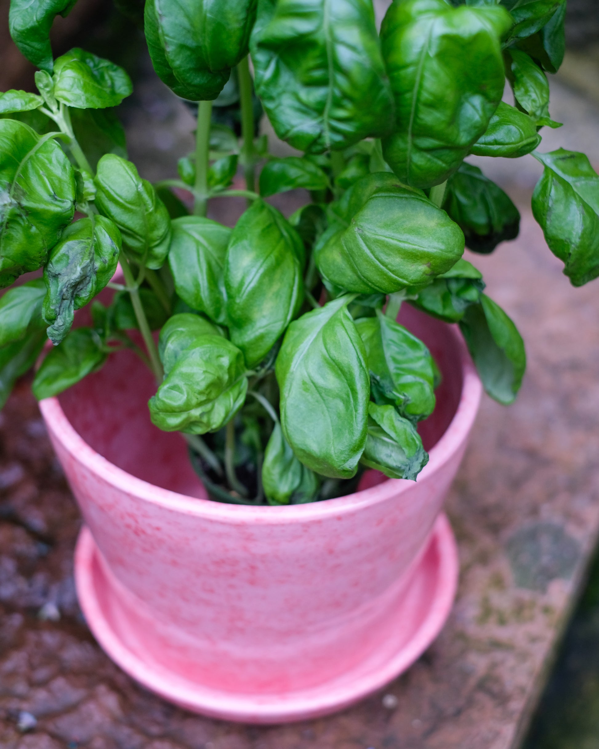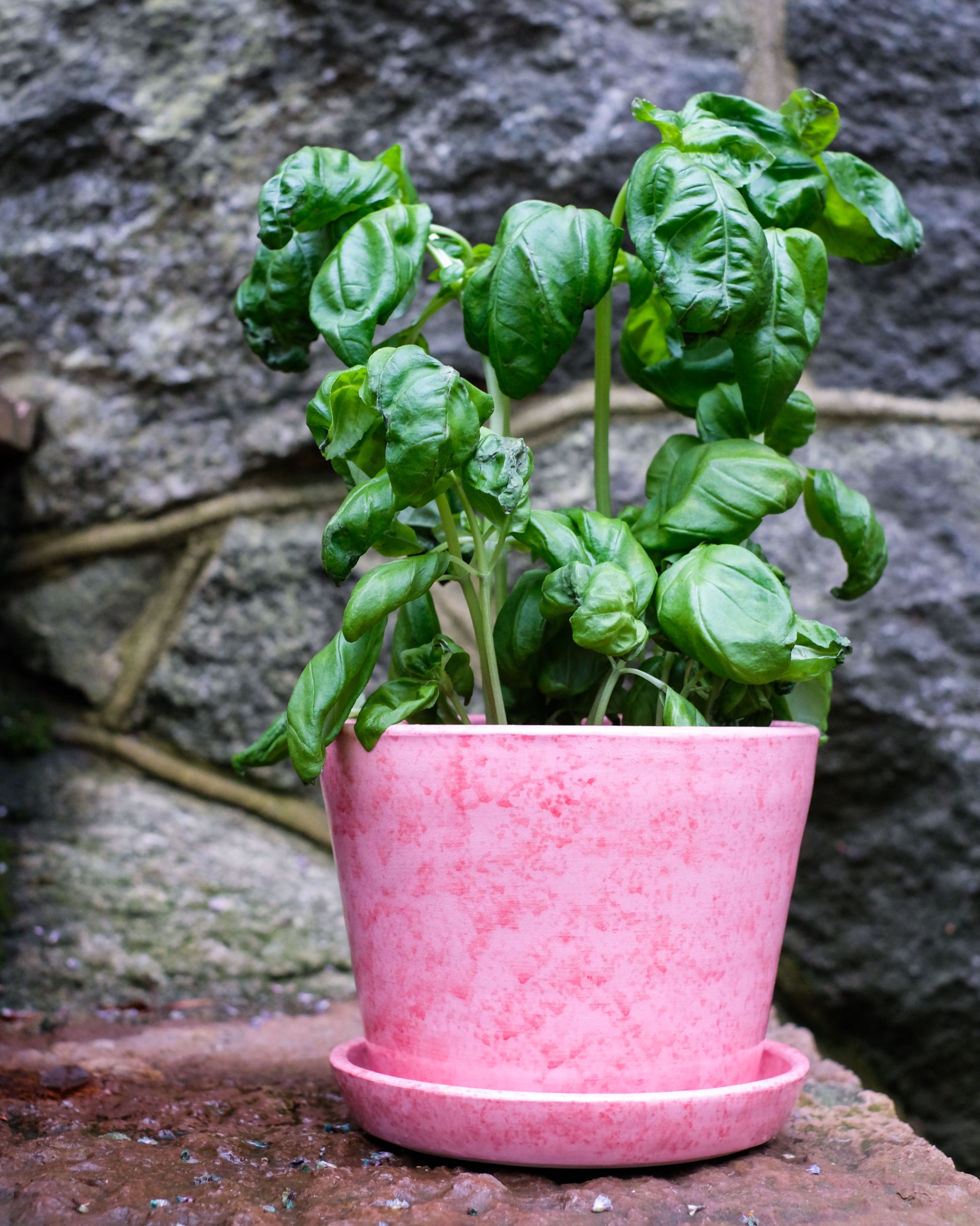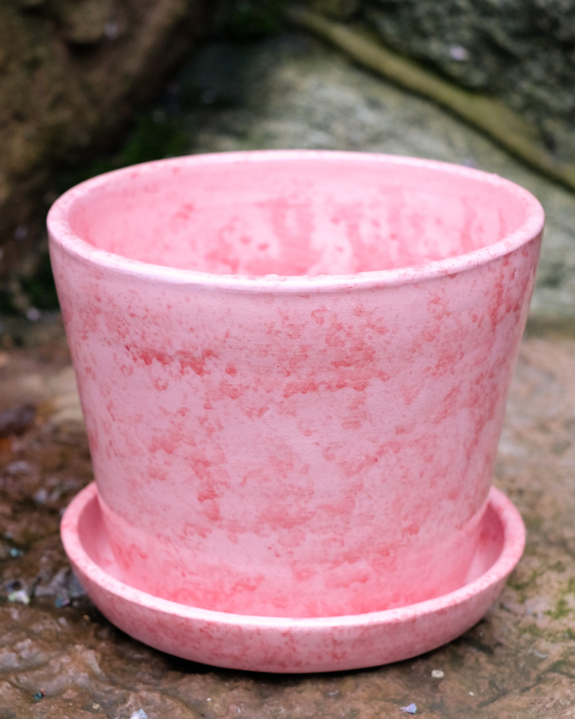 Rosaröd kruka med fat